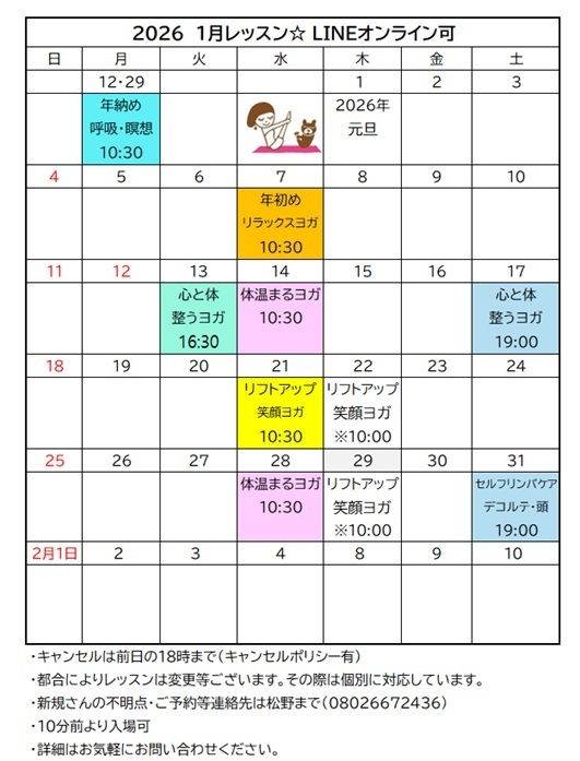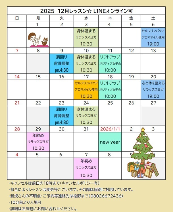 ≪レッスンは完全予約≫2025年1月より